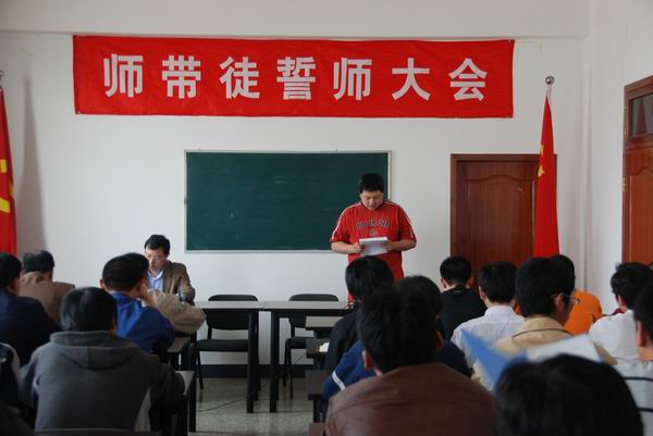 老师代表表示:关心、关爱徒弟,促膝共勉,及时了解徒弟的业务知识及技能掌握、提高程度。不断调整学习计划,有针对性的进行补培。保证按计划在规定的时间内使徒弟达到熟练掌握专业知识、工作技能和独立工作能力。 学员代表表示:徒弟愿接受师傅的传授和指导。尽早掌握业务知识,提高工作能力为目标,按师傅的培训计划及课题安排,认真刻苦学习钻研,以坚韧不拔的精神、遇事不避难、尊师爱长、不耻下问、主动请教、细致细心、精益求精攻克难关,早日成为企业的有用之才。