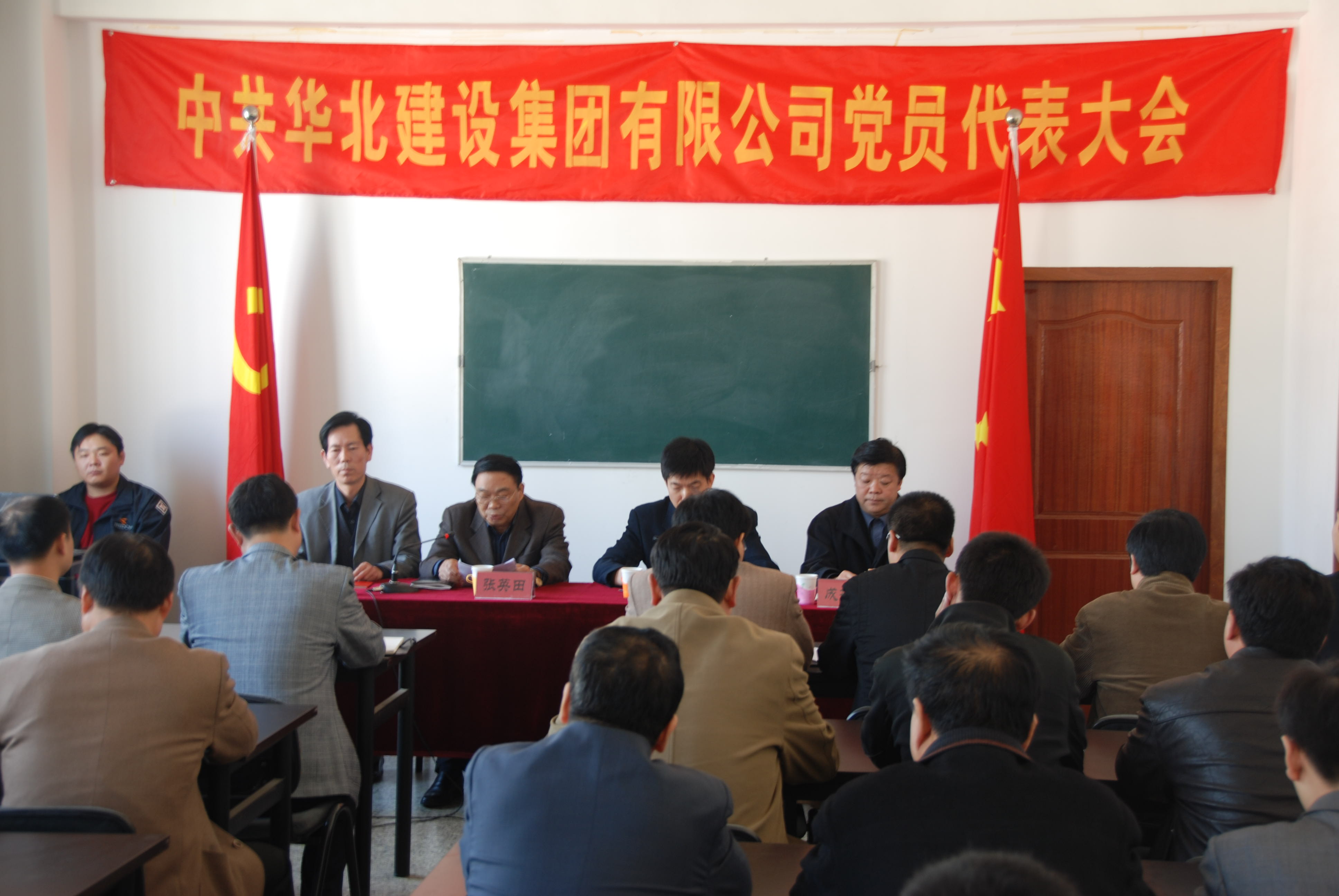 2008年11月1日,中共华北建设集团公司委员会,在京召开党员代表大会,筹备委员会负责人张英田,作了大会工作报告,回顾总结了过去的工作,提出今后党委的工作。与会代表进行了审议,随后进行投票选举,会议选举出七名党委委员:张英田、成振通、鲍跃军,王旭、甄跃平、张科兵、宋军生,为本届党委委员。河北驻北京建管处主任,党组织书记赵春旺同志到会并做了重要讲话。会议在雄壮的国际歌声中结束。